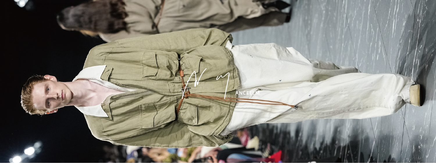 jacket : SUMFLOWER / WAXED LEISURE CAMOknit : ANCELLM / EMBROIDERY CABLE STITCH KNITshirt : ANCELLM / DENIM DRESS SHIRTpants : ESSAY / WOOL WIDE STRAIGHT TROUSERSshoes : CAMPER LAB / Vamonos アンクルブー...